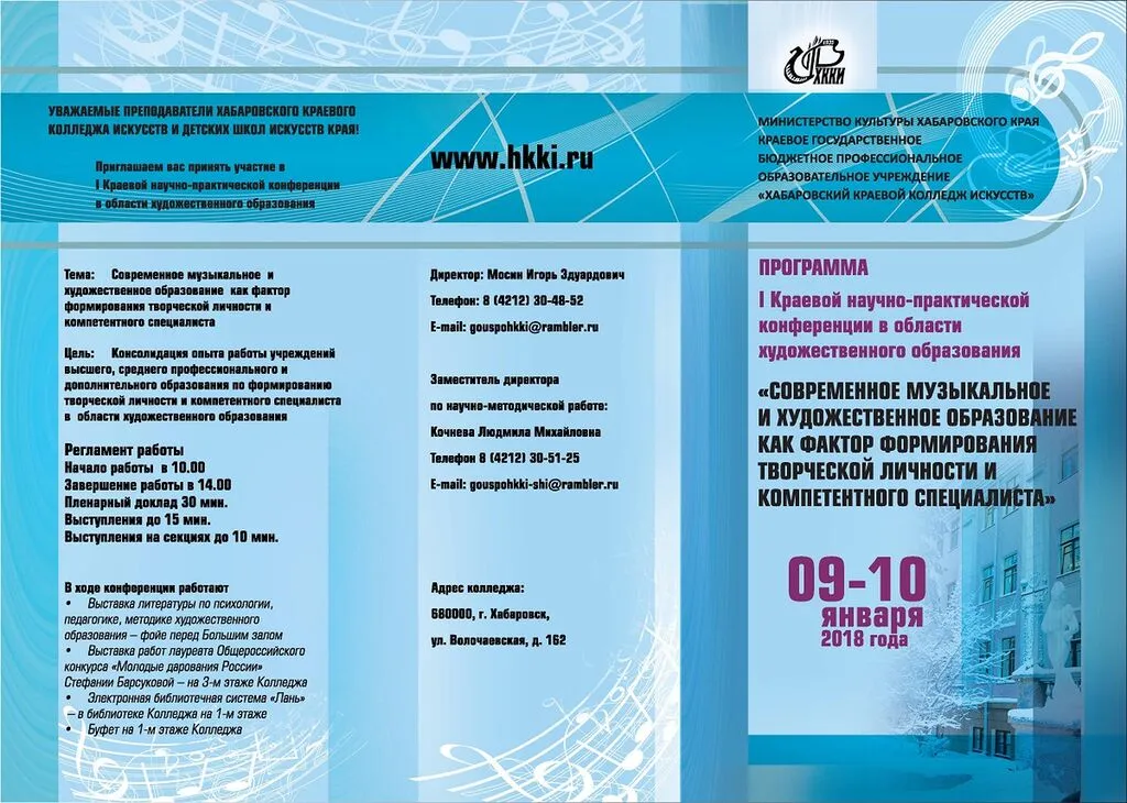 Конференция проходила 09 – 10 января 2018 года на базе КГБ ПОУ «Хабаровский краевой колледж искусств».