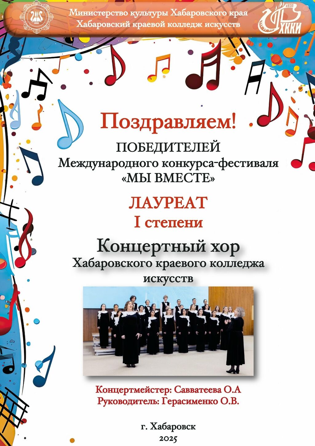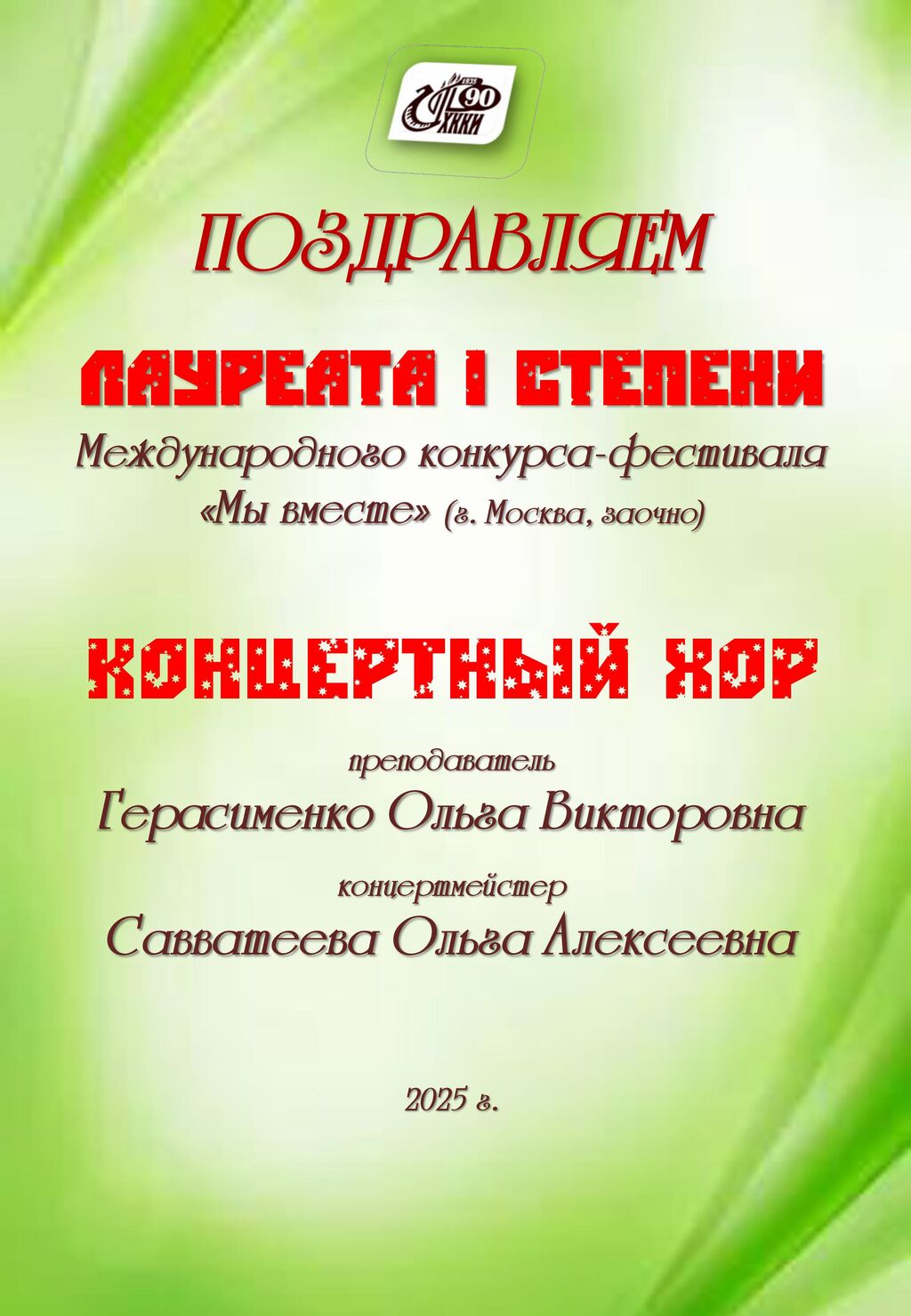 Поздравляем лауреата I степени Международного конкурса-фестиваля "Мы вместе"