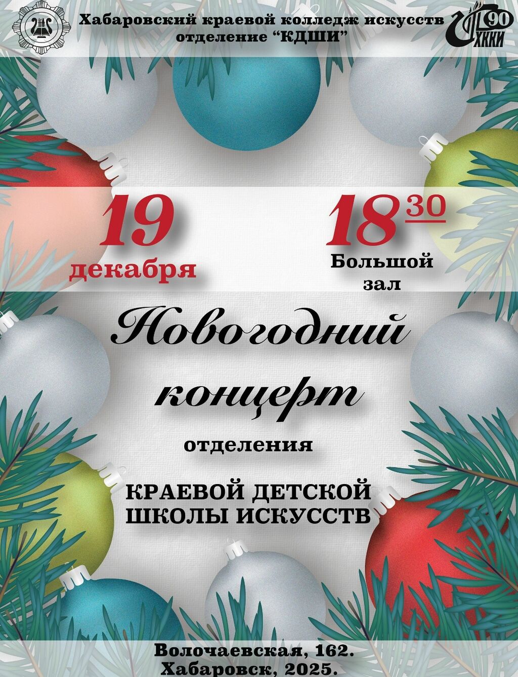 Дорогие друзья! Отделение Краевой детской школы искусств приглашает вас окунуться в атмосферу праздника и волшебства на новогоднем концерте. Вас ждут яркие выступления юных талантов, завораживающие мелодии и неповторимая предпраздничная атмосфера.