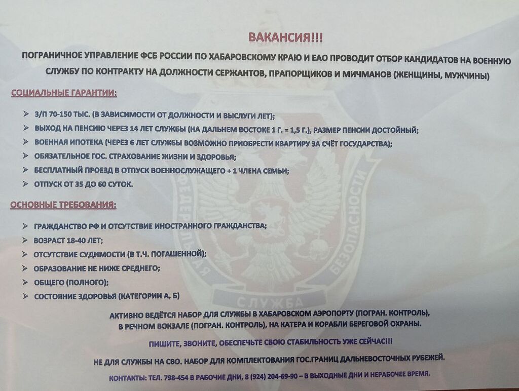 Пограничное управление ФСБ России проводит отбор кандидатов на военную службу по контракту