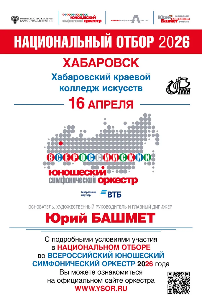 С подробными условиями участия в Национальном отборе во Всероссийский юношеский симфонический оркестр сезонов 2026-28 годов Вы можете ознакомиться на официальном сайте оркестра www.ysor.ru.